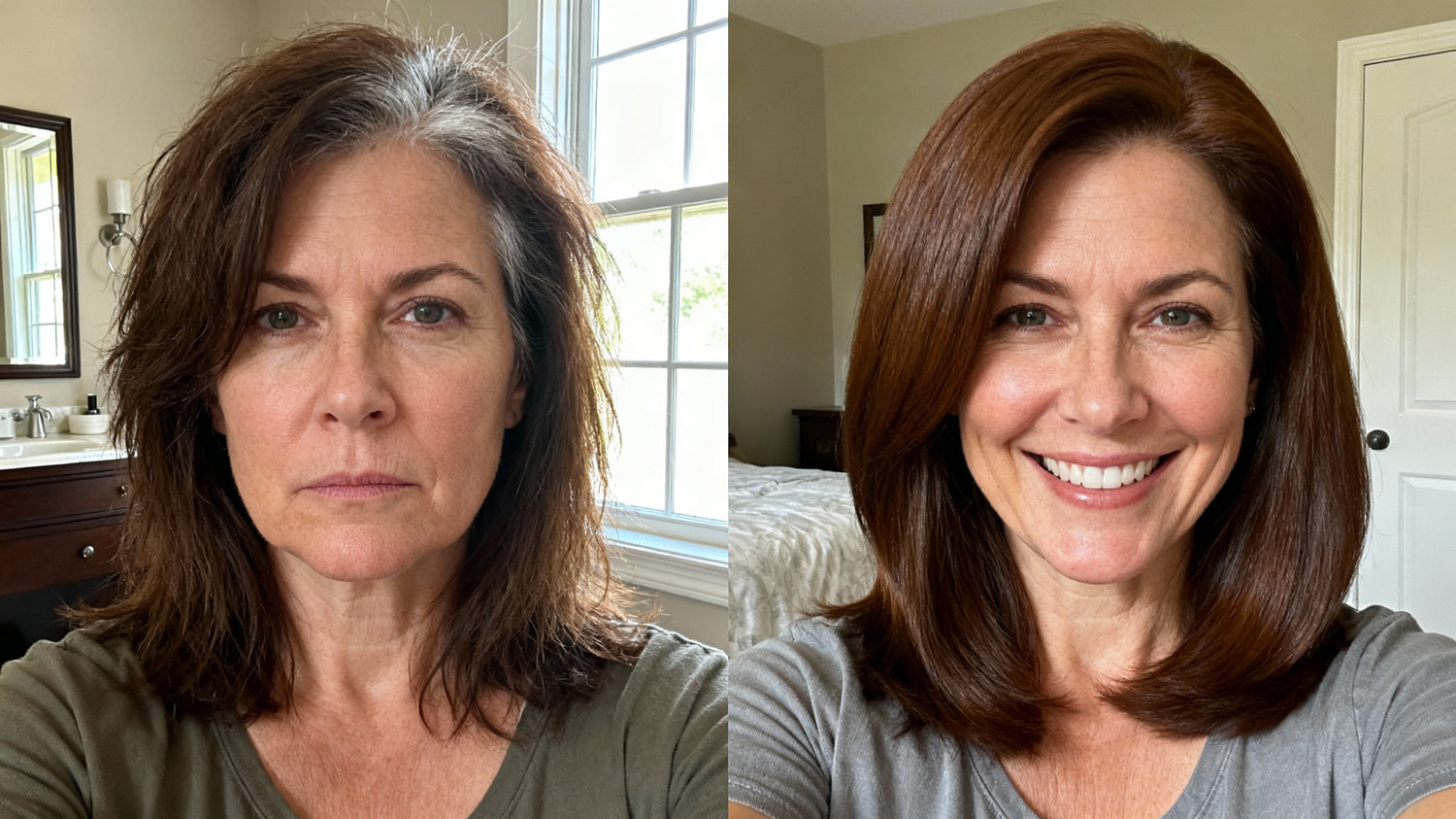 Pare de retocar o seu cabelo de 15 em 15 dias no salão e economize com um produto 3 em 1 que tinge, hidrata e fortalece o seu cabelo enquanto você lava!