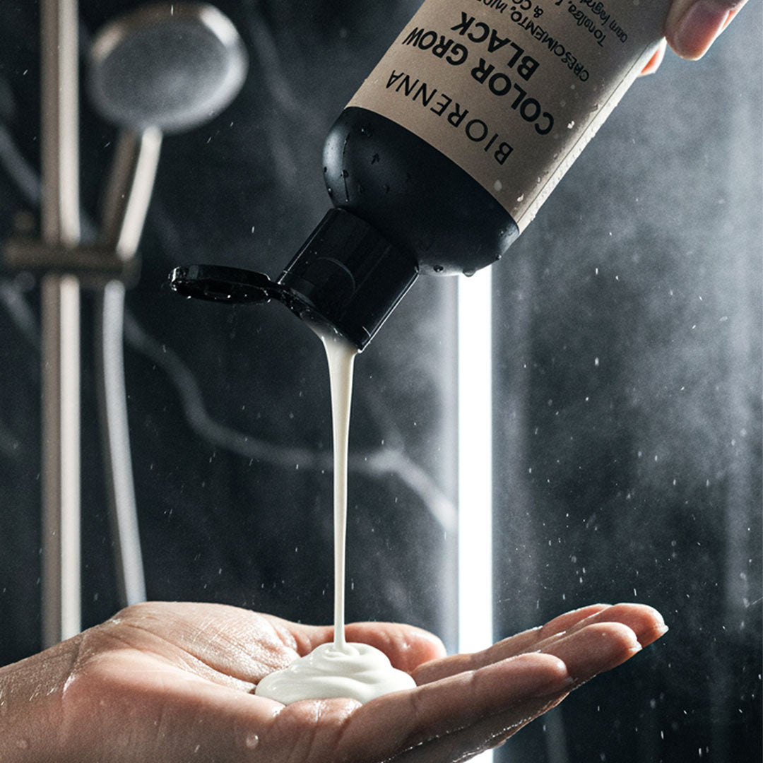 Com pigmentos de alta performance e livres de amônia, o Color Grow tonaliza enquanto lava, realçando a cor natural ou cobrindo gradualmente os fios brancos: